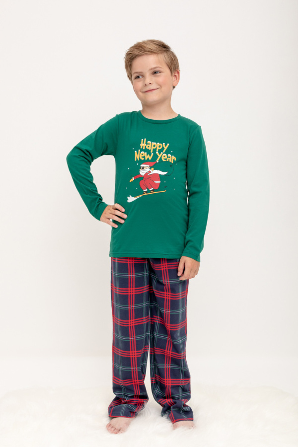 Трикотажный пижамный комплект из натурального хлопка. У джемпера длинные втачные рукава и эластичная мягкая горловина. Брюки с удобным поясом на резинке. Оригинальная набивка и принт выполнены из стойких, гипоаллергенных текстильных красителей. Все трикотажные полотна производятся в соответствии с нормами Швейцарского сертификата ЭкоТекс.