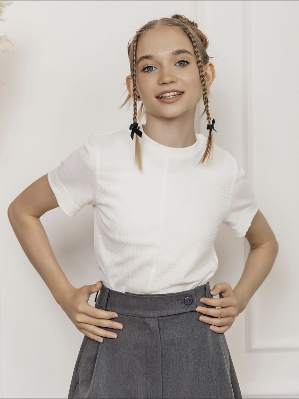Топ из фактурного трикотажного полотна с короткими рукавами.