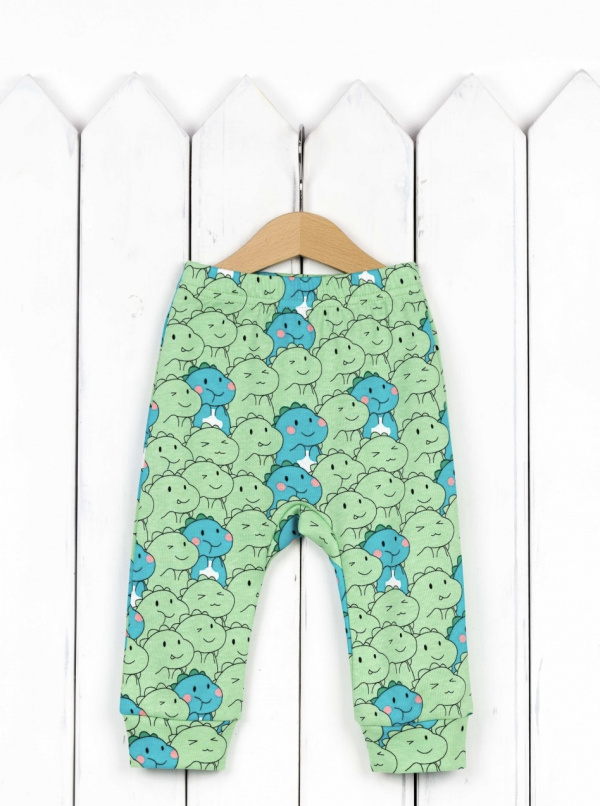 Штанишки с манжетами, выполнены из набивного интерлока (100% хлопок). Пояс на резинке.