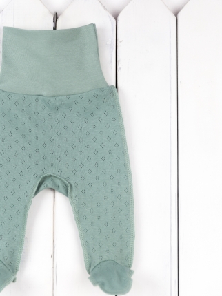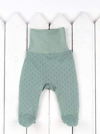 Ползунки из ажурной рибаны (100% хлопок) с широким эластичным поясом из рибаны (95% хлопок, 5% эластан). Выполнены швами наружу.