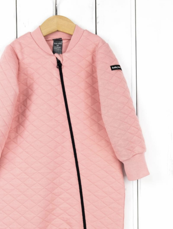 Теплый комбинезон из капитона на молнии (100% хлопок). Воротник и манжеты выполнены из рибаны. Размеры 74, 80 выполнены на манжете