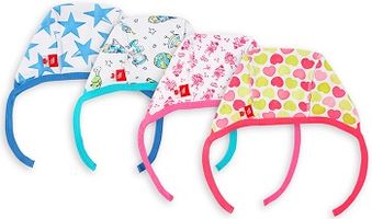 Чепчик из кулирки с набивкой. Окантован бейкой из рибаны, переходящей в завязки.