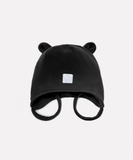 Шапочка двойная из однотонного флиса, с завязками. На макушке декоративные ушки. Спереди светоотражающая нашивка.