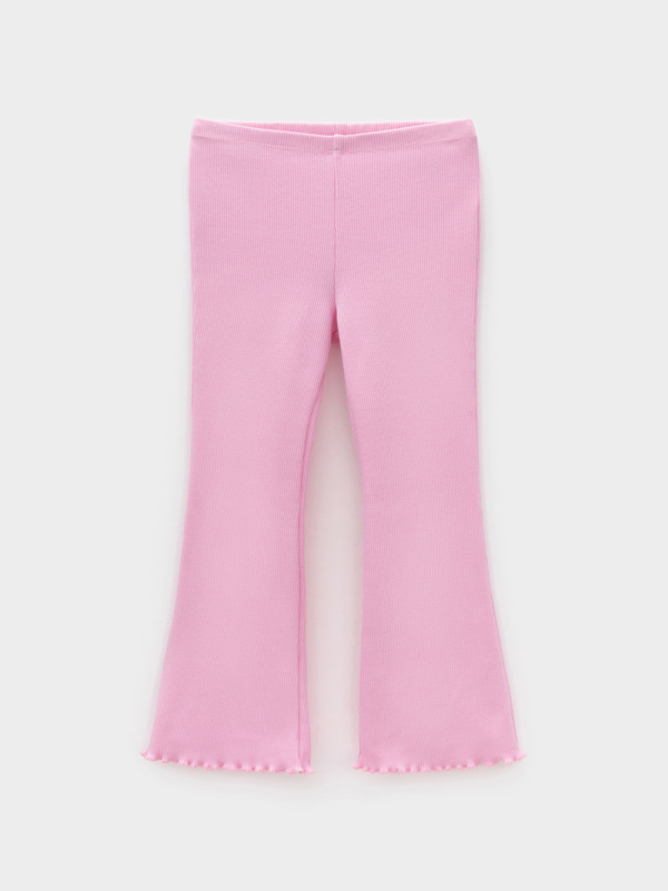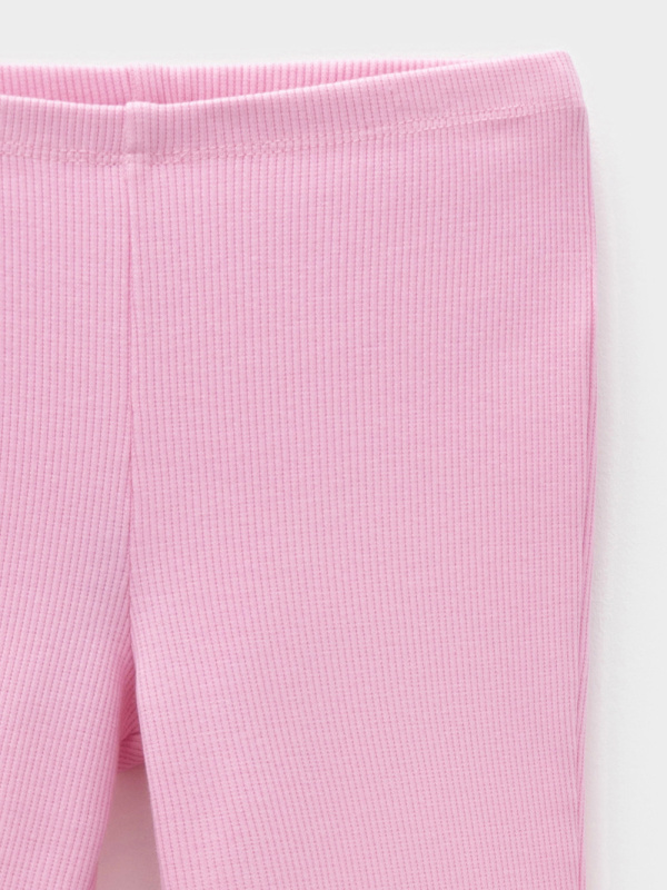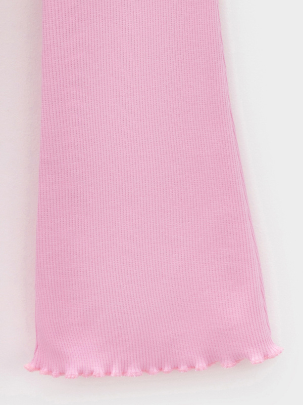 Брюки для девочки из эластичного трикотажа в рубчик. Пояс на резинке. Изделие сохраняет цвет и форму после многократных стирок. Все трикотажные полотна производятся в соответствии с нормами швейцарского сертификата ЭкоТекс.