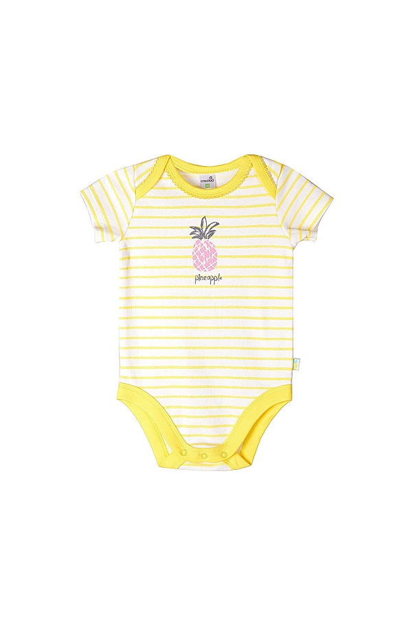 Боди для девочки из однотонного хлопкового трикотажа интерлок. Короткие рукава. В шаговом шве застежки на кнопки-ободок. Спереди принт.