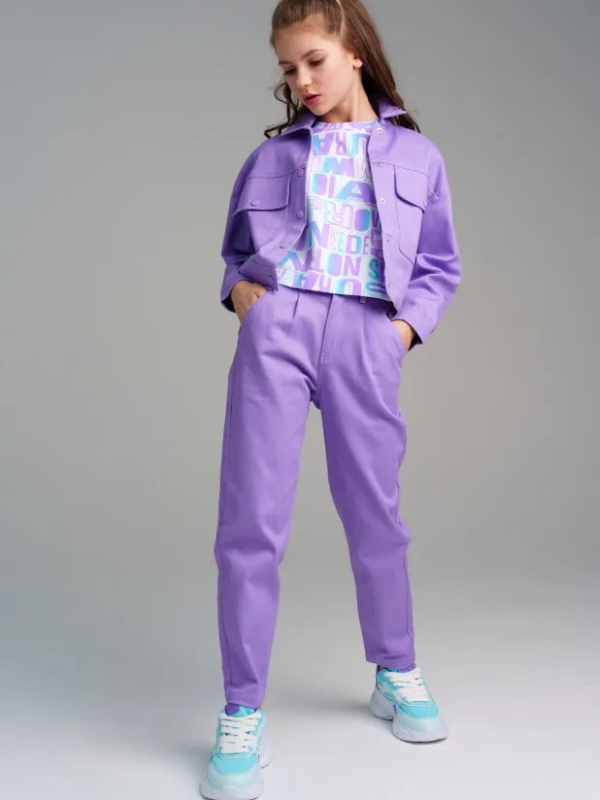 Брюки для девочки. Пояс с внутренней утяжкой. Mom fit - модная свободная посадка на бедрах с зауженным силуэтом от колена. Высокая посадка.