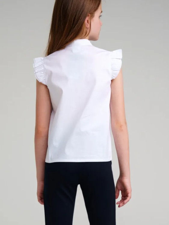Блузка текстильная. Высокое содержание хлопка. Застежка на пуговицы. Декорирована рюшами и кружевом.