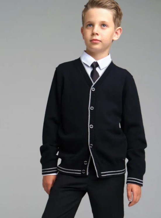 Кардиган из вязаного трикотажа. Прямой силуэт. Застежка на пуговицы.