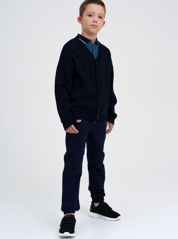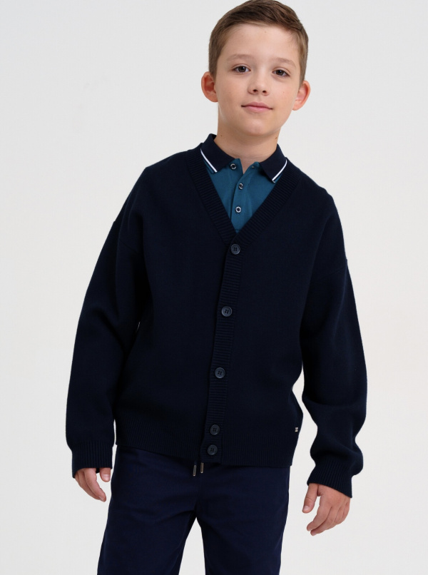Оверсайз синий школьный кардиган для мальчика подростка. Кардиган на пуговицах выполнен из вязаного трикотажа с высоким содержанием вискозы. Кофта в школу выглядит стильно, благодаря лаконичному дизайну. Рубашка, футболка или поло + кардиган для школьника составят красивый элегантный комплект для школы.