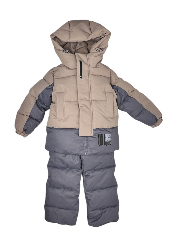 Комплект для мальчиков на практичном и комфортном утеплителе искусственный пух. Куртка двухцветная. Горизонтальные функциональные стежки. Уютная подкладка из флиса. Под укороченной ветрозащитной планкой фронтальная застежка-молния, ветрозащитная планка фиксируется кнопками. Удобные нагрудные карманы с листочками. Манжеты рукавов на эластичной тесьме, с внутренней стороны обработаны флисом. Капюшон не съемный. Регулировка объема по лицевой части капюшона выполнена с помощью кулисы со шнуром-резинкой и фиксаторами. Вся фурнитура лаконичного черного цвета. Бретели полукомбинезона обработаны эластичной тесьмой и пристегиваются фастексами. Для более плотного прилегания со стороны спинки предусмотрена кулиса с эластичной тесьмой. Центральная застежка – молния. В боковых швах полукомбинезона – светоотражающие канты. В нижней части левой полочки и на ветрозащитной планке термопринт.