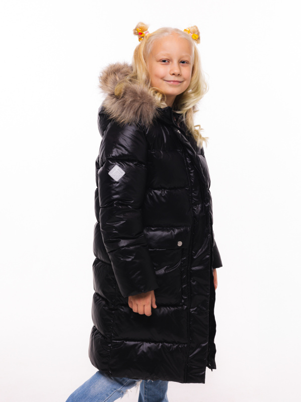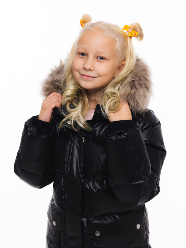 Лаконичное полупальто для девочки из ткани с мягким блеском и легким эффектом «хамелион». Утеплитель - искусственный пух. Уютная подкладка из флиса. Функциональные горизонтальные стежки. Большие накладные карманы. Складка по линии талии выполняет функцию клапанов карманов. Фронтальная застежка-молния под ветрозащитной планкой. Ветрозащитная планка фиксируется потайными кнопками. На рукавах внутренние трикотажные манжеты. Воротник-стойка. Несъемный капюшон. Опушка из натурального меха пристегивается молнией. В боковом шве светоотражающий флажок, на рукаве и на спинке - светоотражающие нашивки.