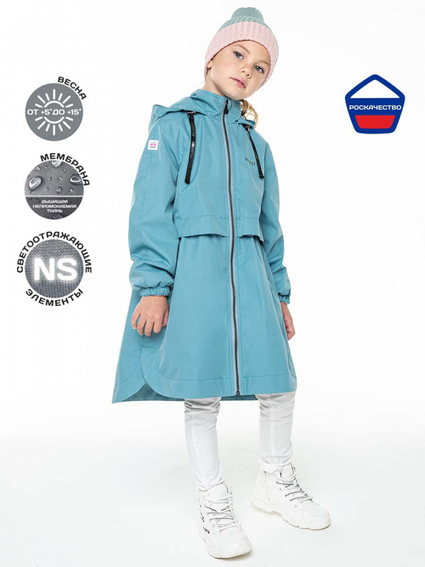 Плащ актуальных расцветок из мембранной ткани. Мембрана отталкивает воду и грязь, защищает от ветра, позволяет коже дышать. Подкладка спинки и полочки из флиса, в рукавах трикот для удобства продевания рук. Расклешенный силуэт , отлетные кокетки по полочке и спинки , ассиметричный низ делают данную модель современной . Центральная застежка на тесьму-молнию , внутренняя планка защитит от холодного ветра и непогоды. Капюшон втачной с кулиской по лицевой части для регулировки объема. Два кармана на молнии. Манжет на резинке защищает от проникновения холодного ветра . На спинке фирменный светоотражающий принт. Комфортная температура эксплуатации от +5 до +15 С. Данные носят субъективный характер и зависят от индивидуальных особенностей ребенка.