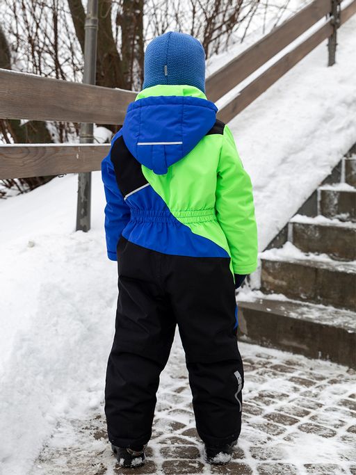 Комбинезон из мембранной ткани с эксклюзивными яркими расцветками. Современный материал отталкивает с поверхности изделия влагу и грязь, защищает от ветра, позволяет телу дышать. Мембрана в сочетании с утеплителем нового поколения Fiberlite сохраняет тепло во время прогулок, так и при занятиях активными видами спорта. Флисовая подкладка увеличена до середины бедра, что позволяет находиться в снегу долгое время. Капюшон пристегивается на молнию и имеет кулису по лицевой части для регулировки объема .Для создания силуэта на спинке по талии резинка .Рукава с внутренними трикотажными манжетами, что защищает от проникновения холодного ветра. Комбинезон с двумя карманами на молнии. Внутренняя ветрозащитная планка на молнии защитит от непогоды. Эргономичный крой в области колен обеспечивает хорошую посадку. Внутренние бретели позволяют снять верхнюю часть комбинезона, обеспечивая комфортное пребывание в помещении. Муфта по низу брюк препятствует проникновению снега в обувь и обеспечивает хорошую фиксацию.