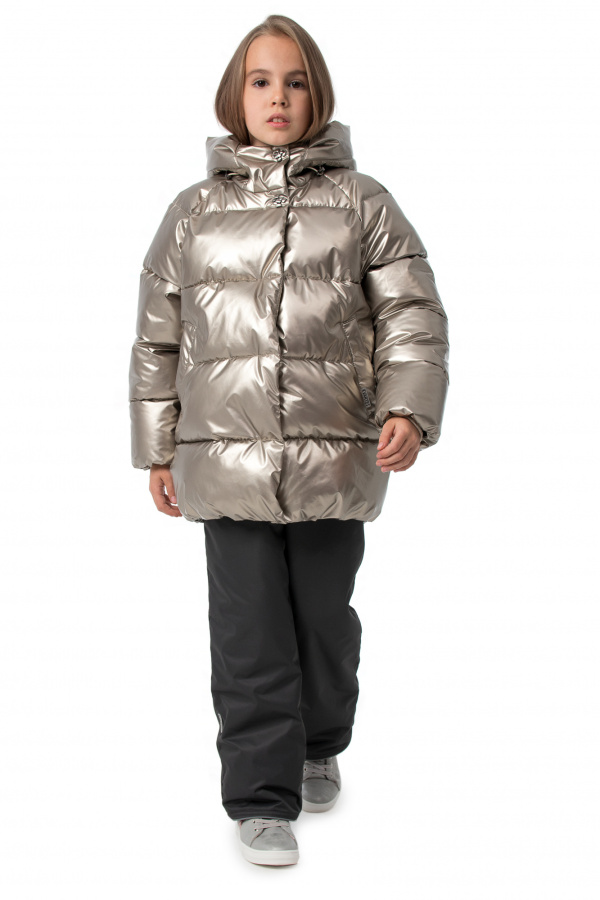 КУРТКА: Лаке-водо-ветро устойчивая П/К: мембранная ткань водо-ветро-грязе-отталкивающая 3000/3000 Опушка: без опушки Стильный зимний комплект для девочки. Куртка-пуховик "О"-силуэта и интересная фурнитура. Трикотажные манжеты. Капюшон не съемный.
