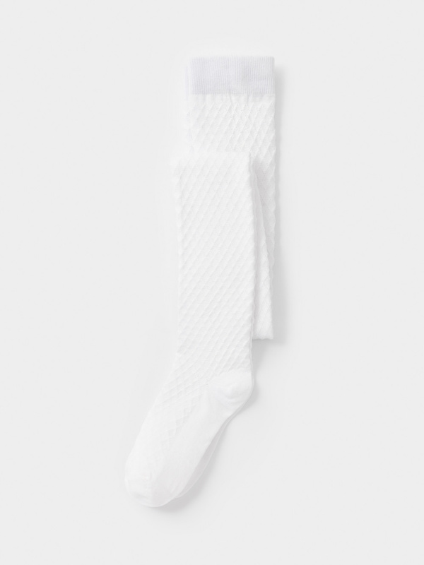 Колготки для девочки однотонные с формованной пяткой и эластичной резинкой в поясе. Связаны ажурным узором.