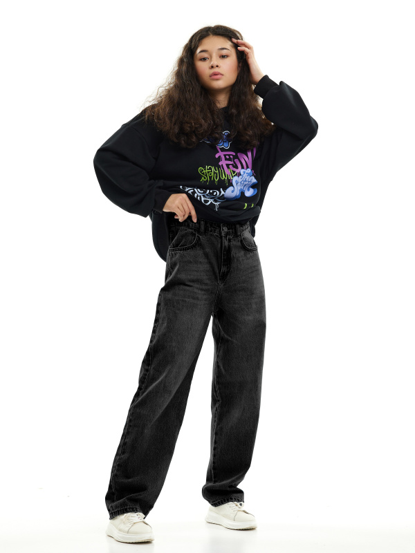 Трендовые джинсовые брюки mom fit со свободной посадкой по фигуре. Длинные штанины, свободные в бедрах и зауженные книзу, высокая посадка по талии, выгодно подчеркивающая фигуру и скрывающая недостатки, два кармана спереди и сзади, шлевки для ремня, застежка на молнию и пуговицу. Сочетай эти базовые джинсы в самых практичных расцветках со своими любимыми футболками или толстовками.