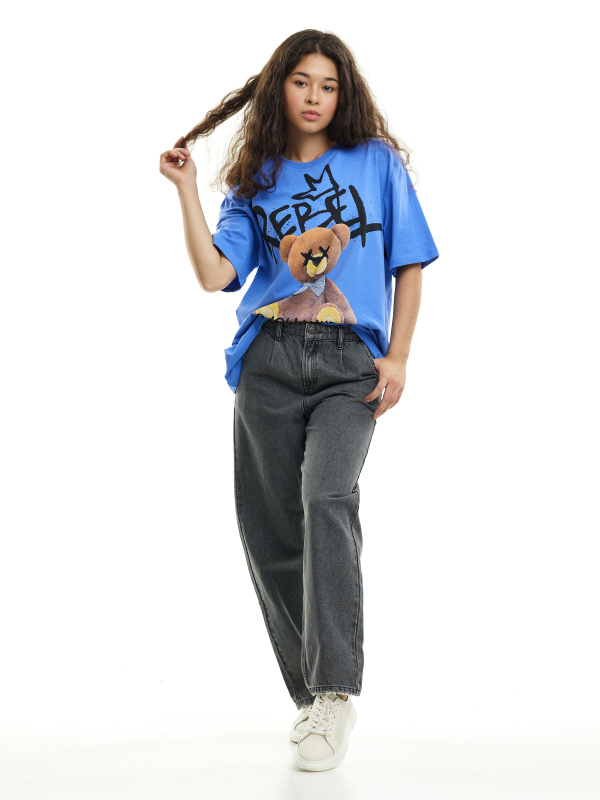 Широкие джинсы-бананы из качественного, хлопкового денима, который не линяет и не теряет форму после стирки. Свободные в бедрах и зауженные книзу, подчеркивают фигуру и скрывают недостатки засчет высокой посадки по талии, защипов спереди и вытачек сзади, застежка на молнию и пуговицу спереди, шлевки для ремня, два боковых карман и два накладных карман сзади. Эти джинсы с классическим вареным эффектом подойдут для расслабленных повседневных и уличных луков, которые никогда не выйдут из моды и станут идеальной основой твоего гардероба на каждый день.