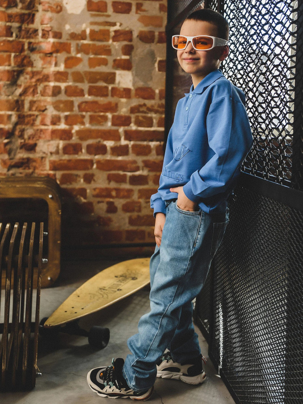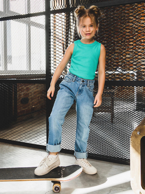 Базовые, прямые джинсы со средней посадкой. Деним из натурального хлопка. Классическая модель подойдет как девочкам, так и мальчикам. Брюки будут гармонично смотреться с объемным верхом кроя оверсайз.