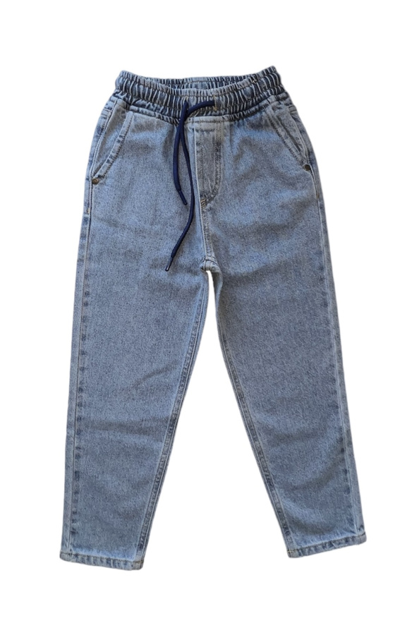 Джинсы свободного прямого кроя из натурального хлопка с добавлением эластана для максимального комфорта. Застежка на завязки спереди, эластичный пояс, два накладных кармана спереди. Данная модель отлично будет смотреться как на девочках, так и мальчиках и подойдет для образов в школу, по любому поводу и на любой сезон.