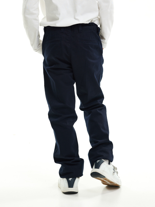 Хлопковые брюки чиносы с добавлением эластана прямого силуэта. - классическая средняя посадка по талии, подчеркивающая фигуру - застежка на молнию и пуговицу спереди - два боковых кармана с отрезным бочком, два задних прорезных кармана