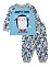 Пижама для мальчика с длинными рукавами-реглан. Горловина круглая, обработана притачной бейкой из рибаны с лайкрой. Нижние срезы рукавов и брюк обработаны притачными манжетами из рибаны с лайкрой. Перед фуфайки декорирован принтом.