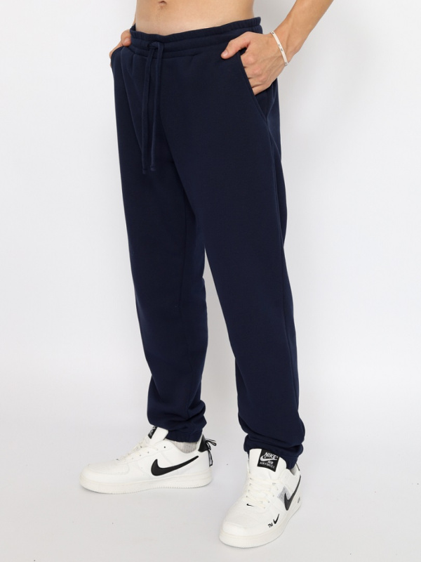 Свободные трикотажные брюки из плотного футера без начеса с карманами. Пояс притачной с резинкой и функциональным шнуром. По низу брюки собраны на резинку.