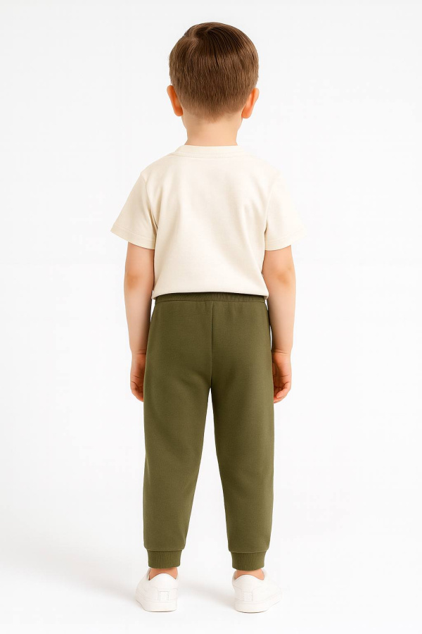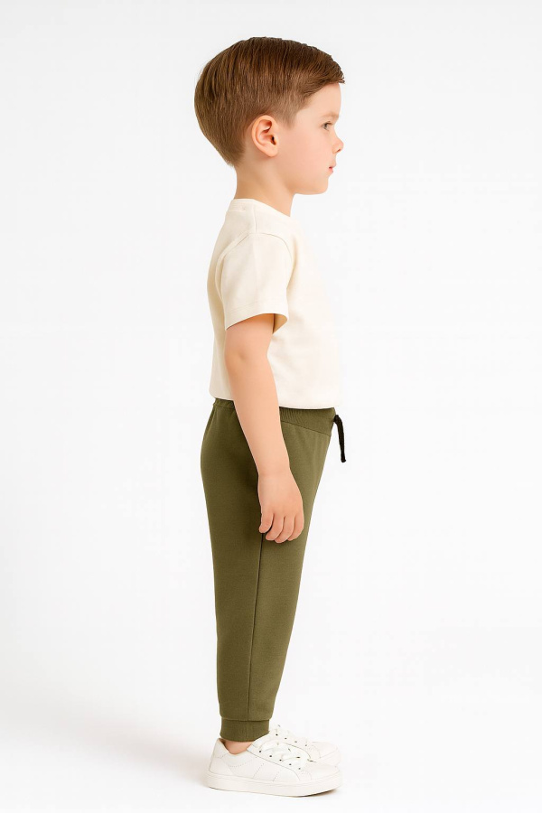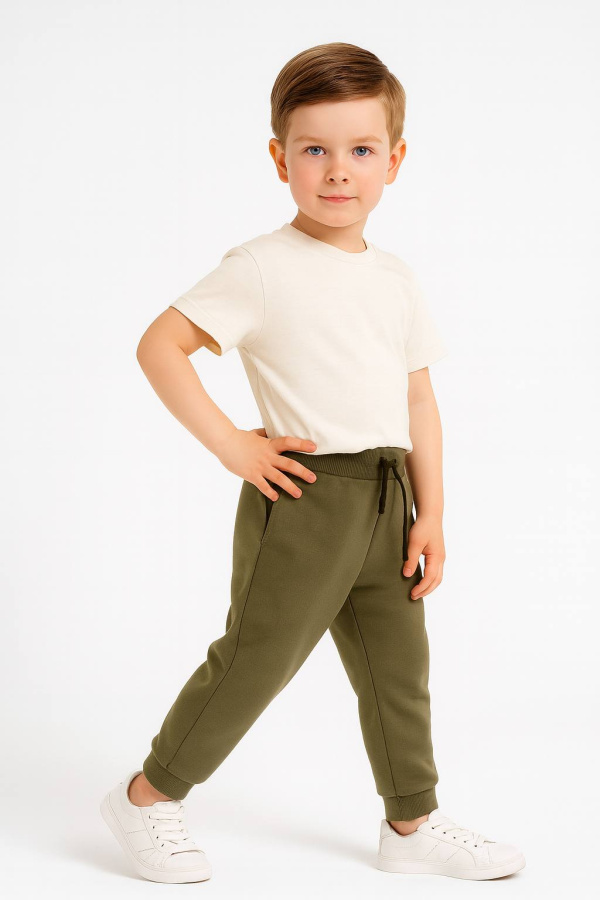 Брюки для мальчика: Брюки с боковыми карманами и манжетами по низу из рибаны с лайкрой. Пояс притачной, с резинкой.