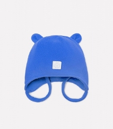 Шапочка двойная из однотонного флиса, с завязками. На макушке декоративные ушки. Спереди светоотражающая нашивка.