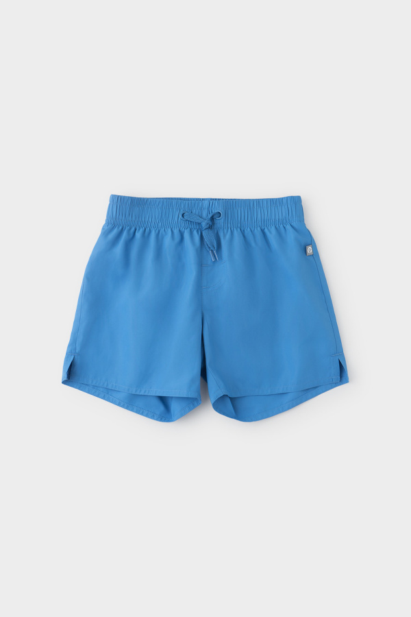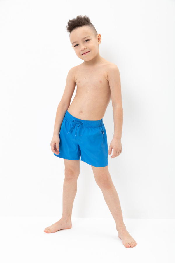 Плавательные шорты для мальчика с эластичной резинкой в поясе. Регулируются по ширине с помощью шнурка. Украшены жаккардовой этикеткой с логотипом.