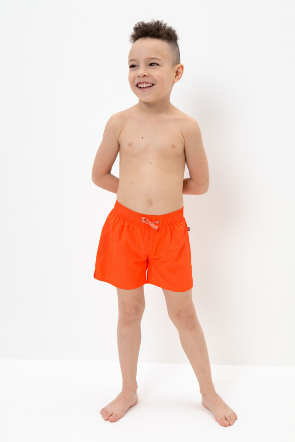 Плавательные шорты для мальчика с эластичной резинкой в поясе. Регулируются по ширине с помощью шнурка. Украшены жаккардовой этикеткой с логотипом.