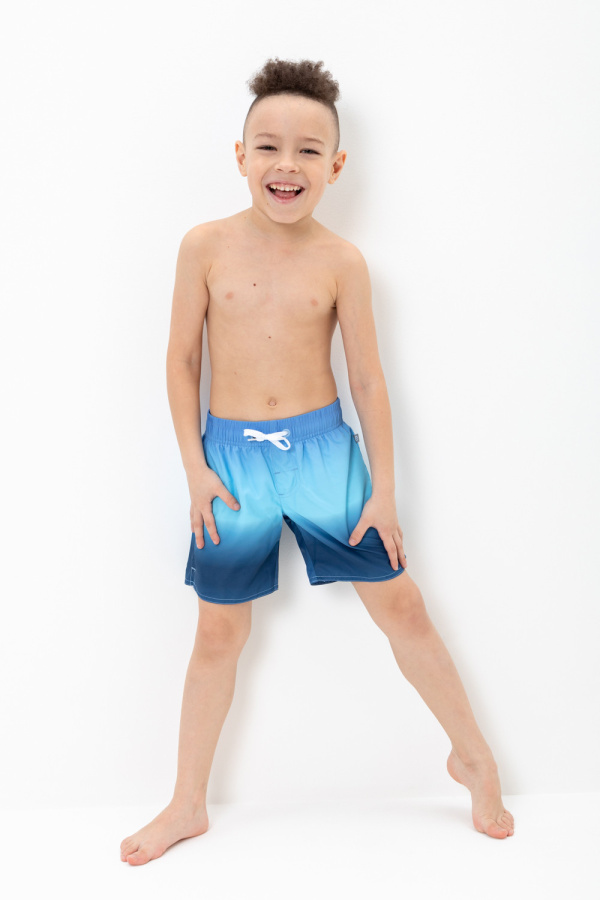 Плавательные шорты для мальчика с эластичной резинкой в поясе. Регулируются по ширине с помощью шнурка. Украшены жаккардовой этикеткой с логотипом.