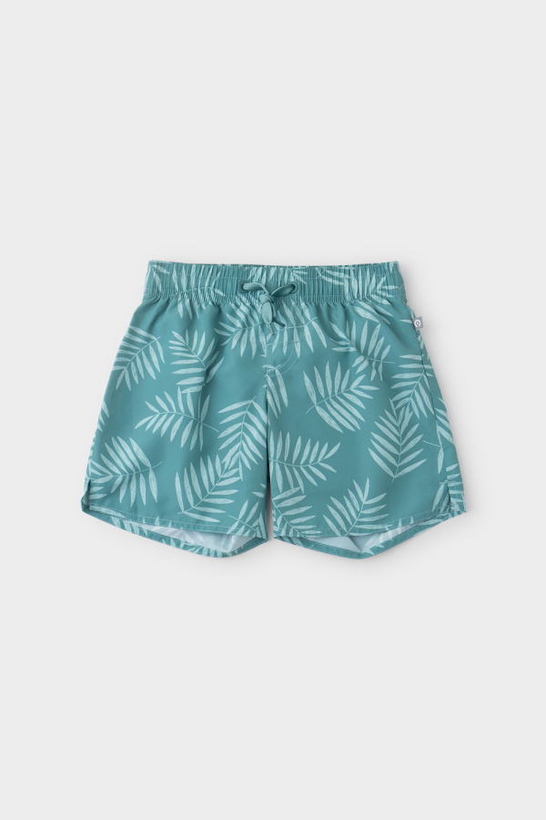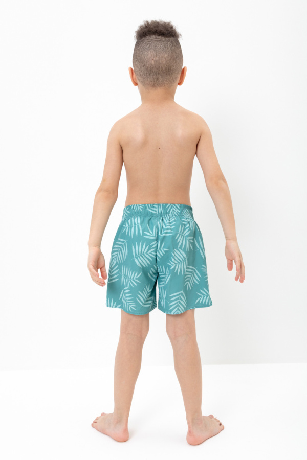 Плавательные шорты для мальчика с эластичной резинкой в поясе. Регулируются по ширине с помощью шнурка. Украшены набивкой и жаккардовой этикеткой с логотипом.