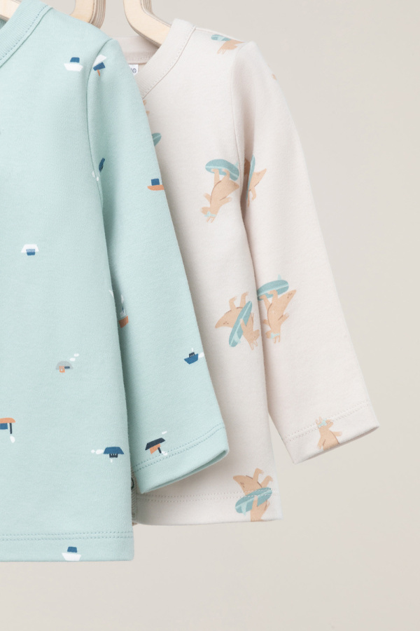 Кофточка для новорожденных из мягкого, эластичного трикотажа, произведенного из натурального хлопка. Изделие застегивается на кнопки. Оригинальная набивка выполнена из стойких, гипоаллергенных текстильных красителей. Все трикотажные полотна производятся в соответсвии с нормами Швейцарского сертификата ЭкоТекс.