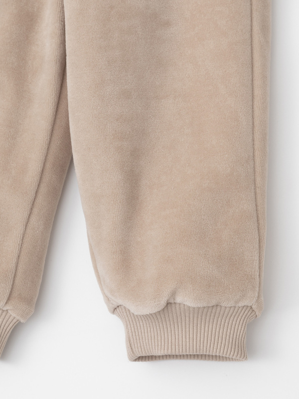 Тёплые брюки из велюра для новорождённых. Внутри синтепон и подклад из натурального хлопка. Изделие имеет эластичный пояс и мягкие манжеты. Все трикотажные полотна производятся в соответствии с нормами Швейцарского сертификата ЭкоТекс.