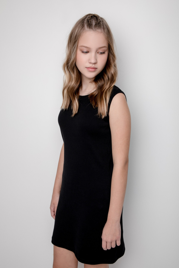 Базовое платье из трикотажного полотна в рубчик с добавлением эластана.