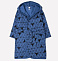 Халат из хлопкового футера с набивным рисунком. Длинные рукава. Накладной карман, уходящий в шов. Пояс продет в шлевки.
