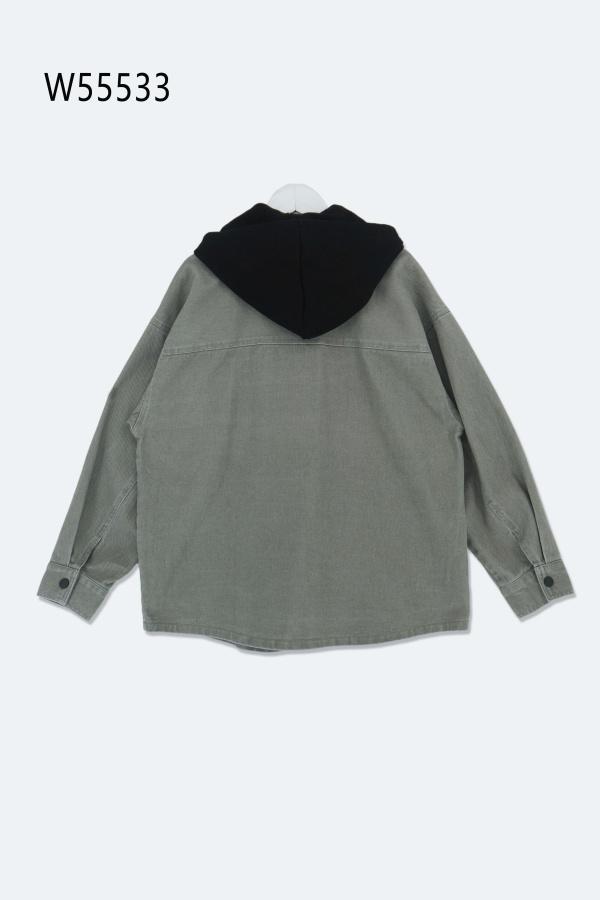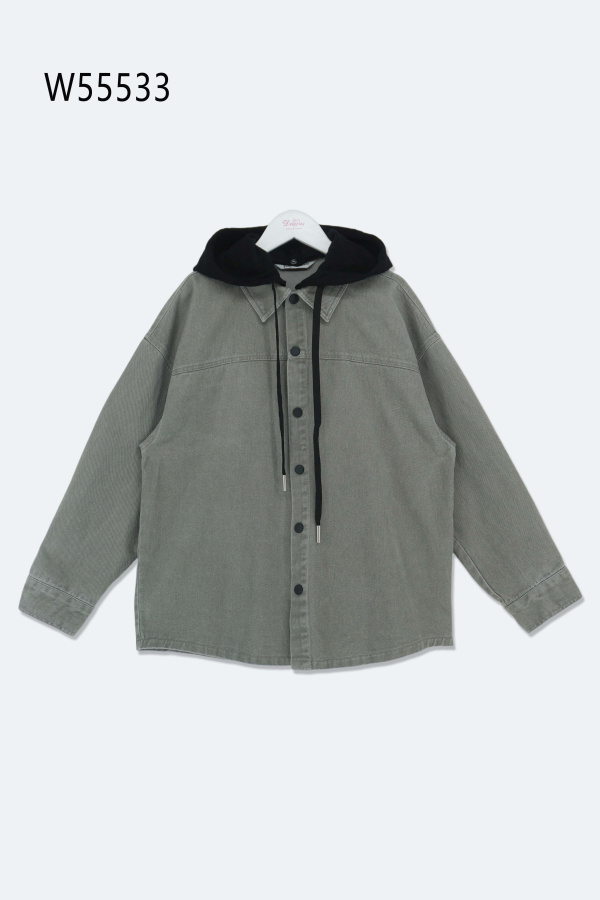 Джинсовка на кнопках. Обычный джинсовый хлопок. Трикотажный капюшон на пуговицах.