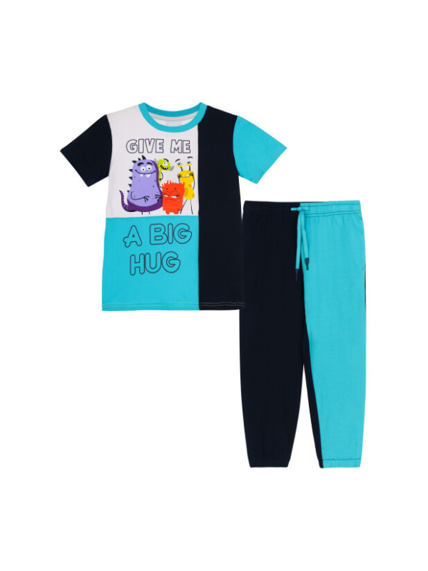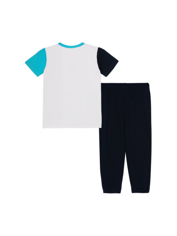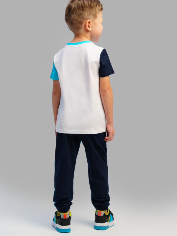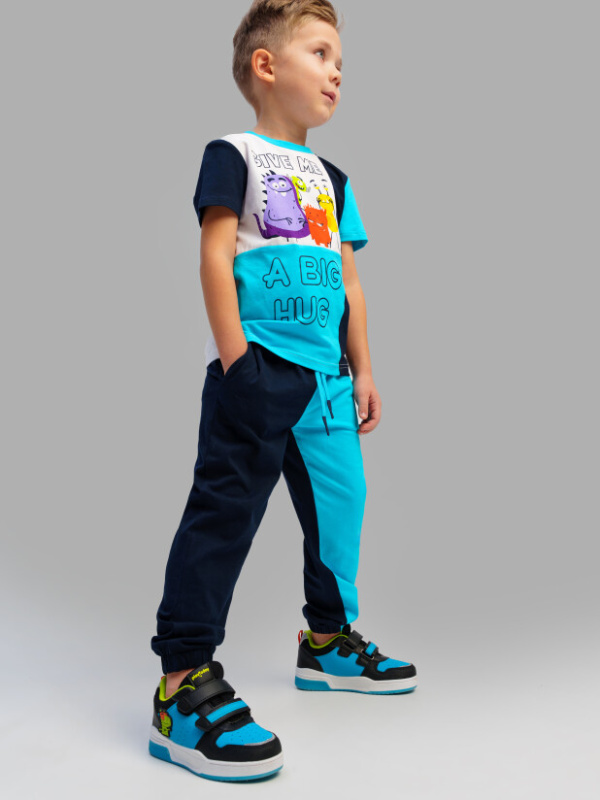 Костюм детский для мальчика. Комплект: футболка, шорты с высоким содержанием хлопка 95%. Благодаря наличию эластана в составе ткани изделие проще в уходе и держит форму. Штаны на резинке со шнурком. Боковые карманы. Модель выполнена из качественного и приятного на ощупь трикотажа.