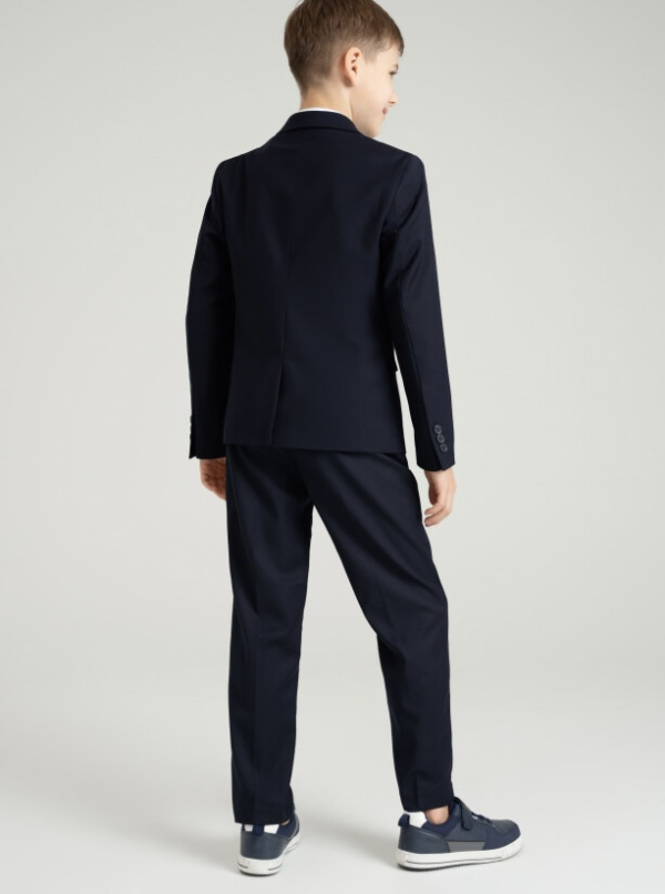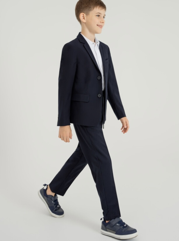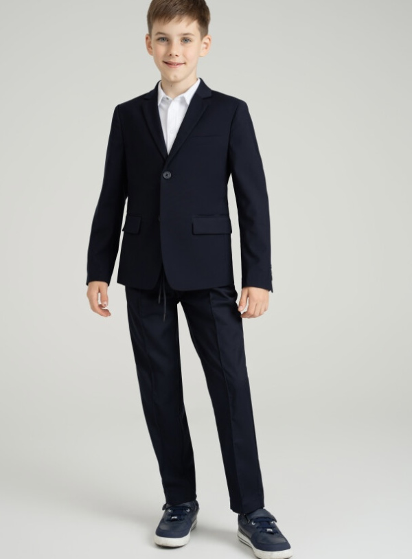 Школьный синий классический костюм - это главный деловой атрибут любого школьника. Классический костюм для мальчика подростка отлично подойдет в школу на каждый день и для торжественных мероприятий. Именно таким и должен быть современный школьный костюм для школы- элегантный, качественный, красивый и практичный. Сложный состав ткани позволяет носить пиджак продолжительное время в течение дня, ощущая уют и комфорт. Школьный пиджак на подкладке, застежка на пуговицы, функциональные боковые карманы. Школьные прямые брюки на резинке с дополнительной утяжкой шнурком обеспечивают комфортную посадку по фигуре. Удобные карманы в боковых швах.