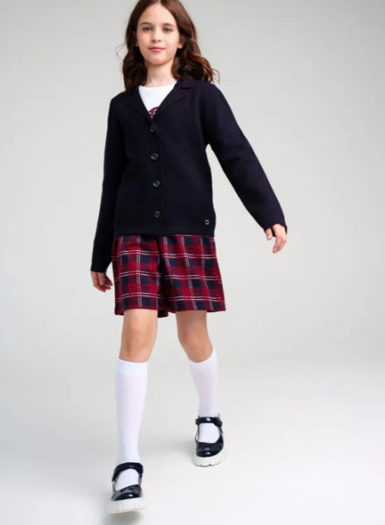 Жакет из вязаного трикотажа. Полуприлегающий силуэт. Застежка на пуговицы. Фактурная вязка.