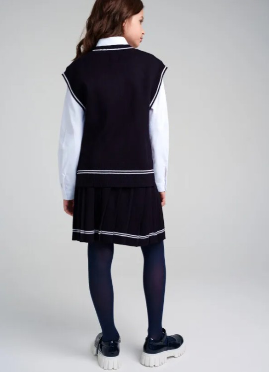 Комплект из вязаного трикотажа: жилет, юбка. Жилет прямого силуэта. Юбка в одностороннюю складку. Оптимальная посадка благодаря резинке на талии. Высокое содержание вискозы 80%. Вискоза отличается высокой гигроскопичностью - она впитывает влагу и отлично сохраняет тепло.