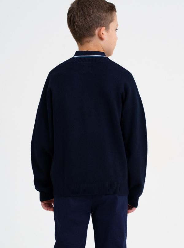 Оверсайз синий школьный кардиган для мальчика подростка. Кардиган на пуговицах выполнен из вязаного трикотажа с высоким содержанием вискозы. Кофта в школу выглядит стильно, благодаря лаконичному дизайну. Рубашка, футболка или поло + кардиган для школьника составят красивый элегантный комплект для школы.