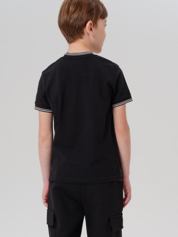 Черная хлопковая футболка с коротким рукавом для мальчика подростка от PlayToday — стильная, удобная и практичная вещь для школы и активных будней. Базовый элемент гардероба, который легко сочетать с любой школьной или повседневной одеждой.