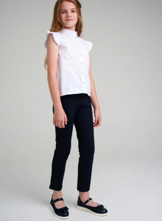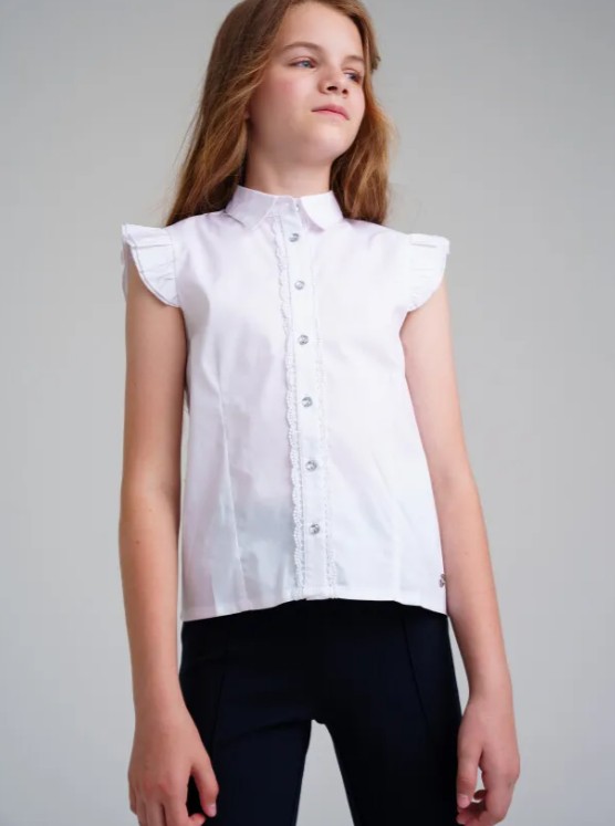 Блузка текстильная. Высокое содержание хлопка. Застежка на пуговицы. Декорирована рюшами и кружевом.
