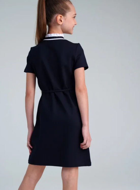 Платье из плотного трикотажного полотна. Мягкий, эластичный материал, благодаря прочному плетению хорошо держит форму, не мнется, не растягивается. Полуприлегающий силуэт. Застежка на пуговицы. Декор - жабо, выполненное из текстиля и кружева. Текстильный пояс с пряжкой.