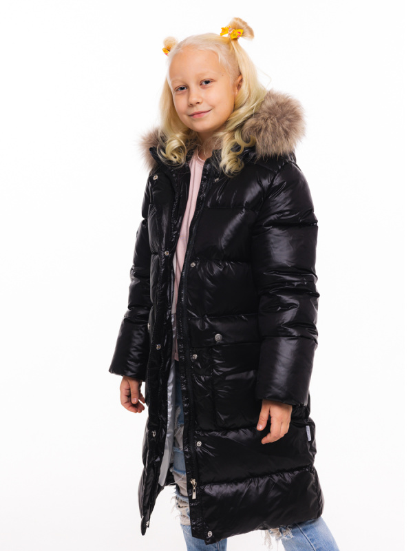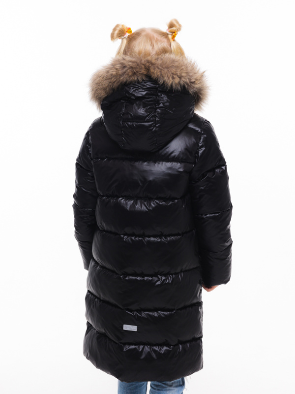 Лаконичное полупальто для девочки из ткани с мягким блеском и легким эффектом «хамелион». Утеплитель - искусственный пух. Уютная подкладка из флиса. Функциональные горизонтальные стежки. Большие накладные карманы. Складка по линии талии выполняет функцию клапанов карманов. Фронтальная застежка-молния под ветрозащитной планкой. Ветрозащитная планка фиксируется потайными кнопками. На рукавах внутренние трикотажные манжеты. Воротник-стойка. Несъемный капюшон. Опушка из натурального меха пристегивается молнией. В боковом шве светоотражающий флажок, на рукаве и на спинке - светоотражающие нашивки.