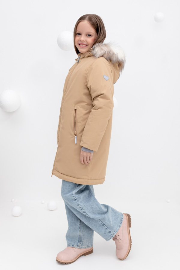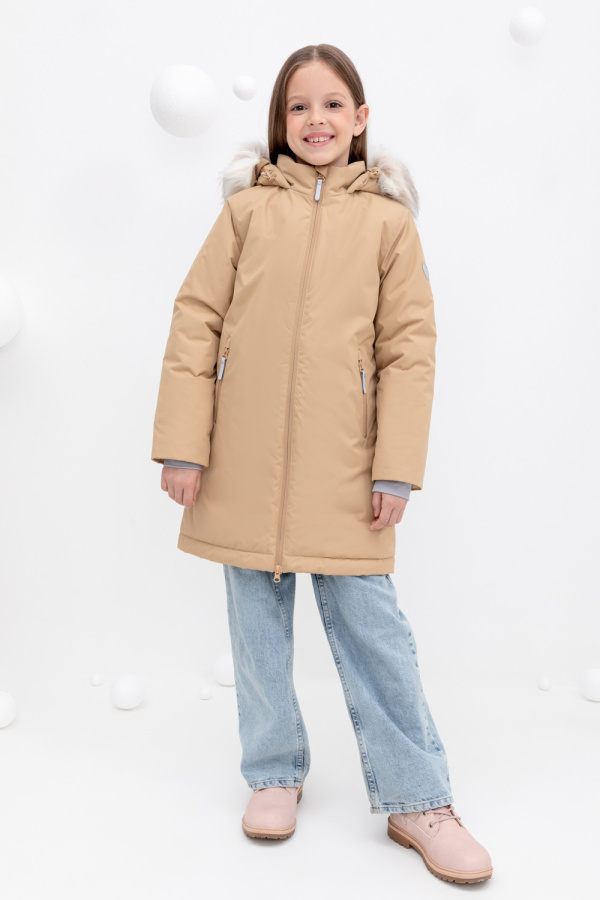 Пальто для девочки с утеплителем нового поколения Слайтекс Найс®, 250 г/м2. Рекомендованный температурный режим - от 0° до -25°.