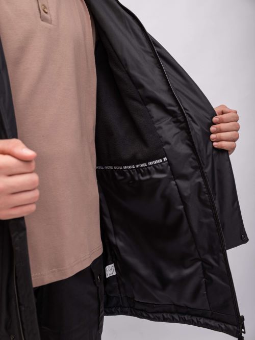 подойдет для разнообразных поводов. Рукава реглан дополнены трикотажными манжетами. Застегивается на водонепроницаемую молнию с 2 бегунками и ветрозащитную планку на кнопках.
