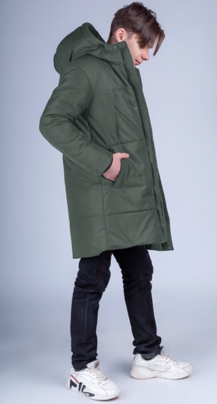 эластичной манжетой. Втачной капюшон, регулируемый шнуром-резинкой и фиксаторами с трикотажным воротником-стойкой. Горизонтальные стежки. Удобные прорезные карманы в листочку на полочках закрываются на молнию.