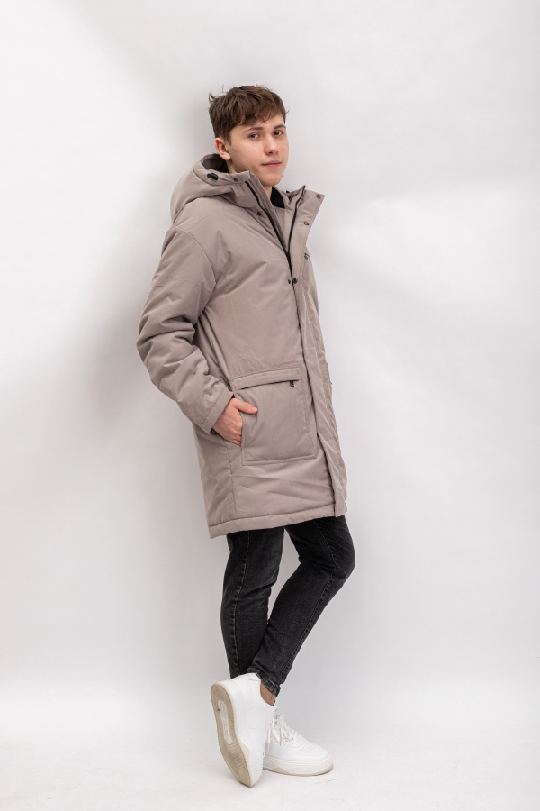 Удлиненная зимняя парка свободного силуэта, обеспечивает комфорт позволяя активно двигаться. Центральная застежка на молнию с ветрозащитной планкой на кнопках. На полочке обработаны большие накладные карманы на молнии с двойным входом, нагрудный карман в листочку с застежкой на молнию, а также вместительный внутренний карман. Комфортный воротник стойка, несъёмный глубокий капюшон с возможностью регулировки. Удобный крой и современный дизайн делает парку идеальным выбором как для мальчиков так и для мужчин.